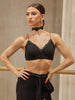 The front lace panels shape the bust while the matching lace choker adds a touch of finesse. The back is daring with crisscross stretch straps, making it striking yet comfortable. Wear it alone or layer it up—this top works just as hard as you do.