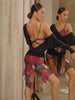 With slanted shoulder, relaxed fit, and striking color mix, it catches the eye. The elastic loop inside the right arm keeps everything in place, while the hidden loop-to-button snap at the left shoulder ensures the set stays perfectly aligned. A delicate metal chain at the back adds a playful touch, and the inner crop with thin straps flatters the collarbone without slipping.