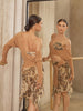 With slanted shoulder, relaxed fit, and striking color mix, it catches the eye. The elastic loop inside the right arm keeps everything in place, while the hidden loop-to-button snap at the left shoulder ensures the set stays perfectly aligned. A delicate metal chain at the back adds a playful touch, and the inner crop with thin straps flatters the collarbone without slipping.