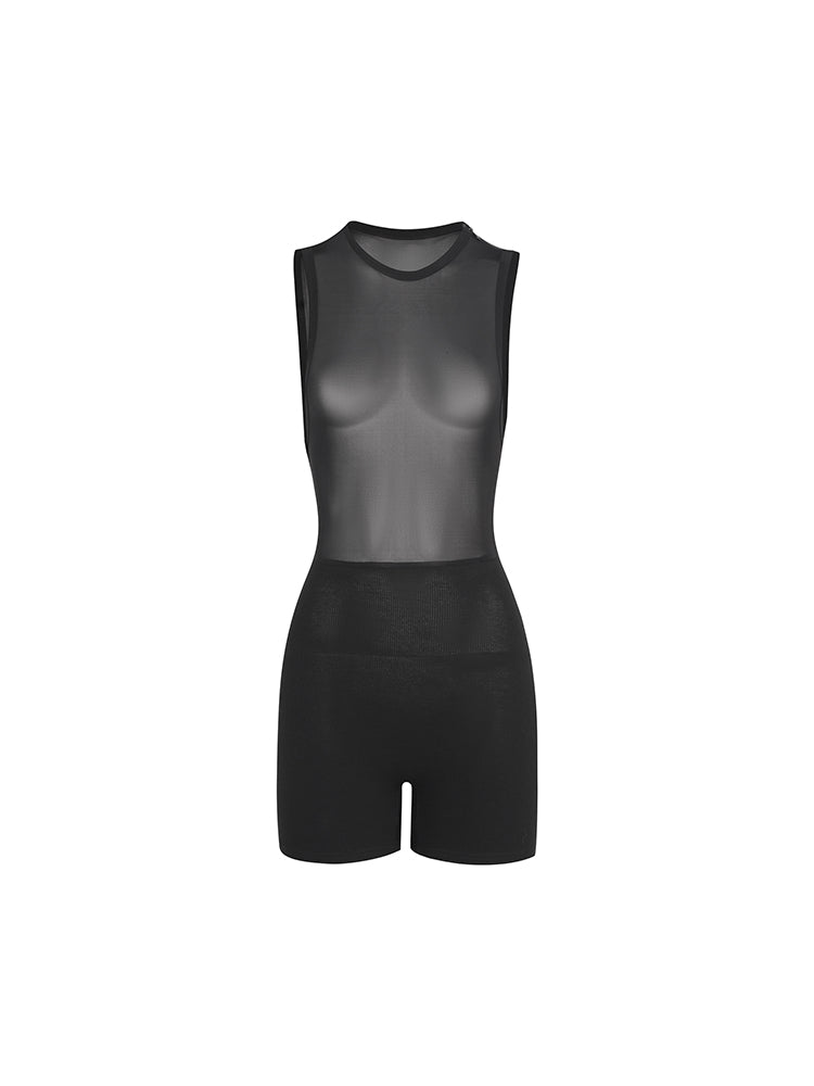 — Material: Silky Mesh + Rib Knit (stretchy fabric)