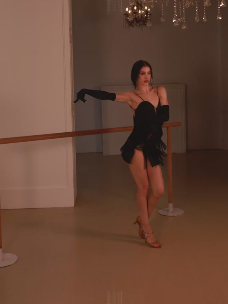 Twist, twist twist in our Body Twist Fringe Dress, featuring a high-waist cut out and layered fringe details. open front mesh desing.This dress will make sure to boost up your dance movement.