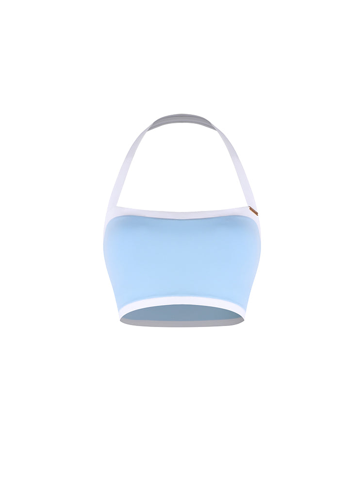The halter neckline flatters your shoulders with an easy, stay-in-place fit, while a hidden elastic band under the bust gives just-right support and a secure hug from warm-ups to coffee runs. Dipped in soft ice cream tones over crisp white, it’s summer bottled into a top. A mini ZYM logo seals the look — sweet, subtle, and effortlessly luxe.