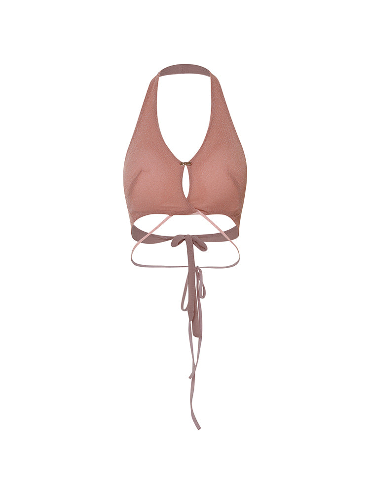 Featuring a sleek cutout and a mini ZYM metallic logo, it catches light perfectly. Made from custom fabric with a hidden shimmer, it moves with you. Adjustable back straps ensure a perfect fit, while two long slim ties can be wrapped diagonally around the waist for a cool, personalized look.