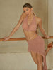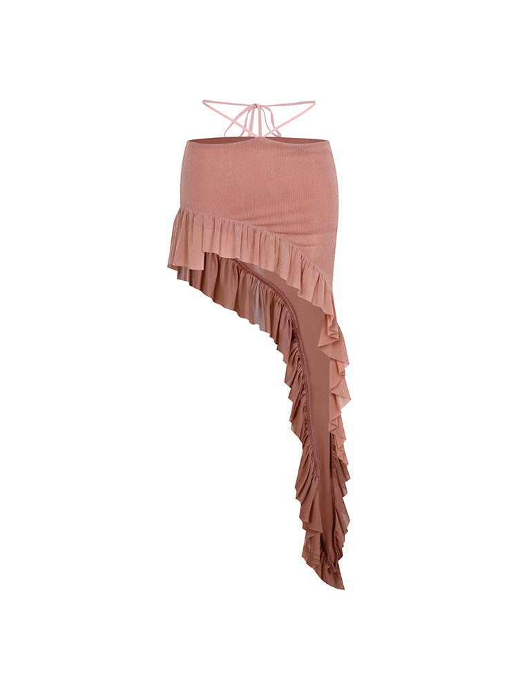 The asymmetric, slanted hem throws out unique waves full of layered texture, dancing to its own rhythm. The chic ties can be wrapped diagonally around your waist for a bold, custom fit. With every spin, the shine kicks in, the shape snaps into place, and your silhouette says it all.